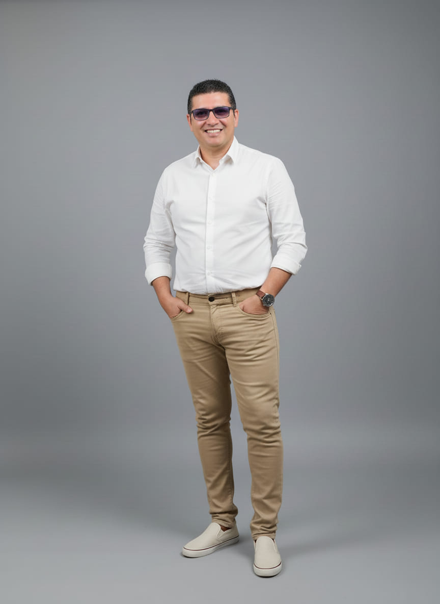 👉 Sim! Mantemos a fidelidade do seu rosto, com seus traços e expressões reais, só que em cenários, looks e poses profissionais..